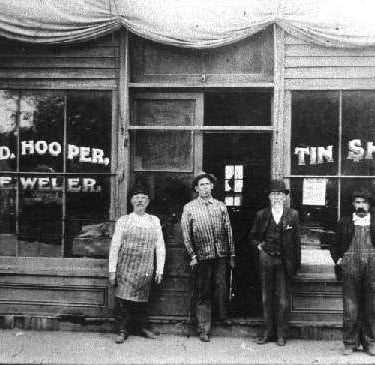 "Bud" was the owner of the towns tinshop and jewelry repair shop. He was an experienced tinsmith, as well as a watch and clock repairman. He had a screened-in corner of the shop for his watch and clock repairs. He also gave "Uncle" Zeke Burrows, a shoe cobbler, space in the shop for his work. Once in payment for some work he had done - a matter of only a few dollars - Bud received an old violin "fiddle" which, when supplied with a new bridge and strings, was found to have a wonderful tone. An old fiddler, Fred Stretch by name, cleaned up the instrument and, upon examination found, on the inside, that the viola (instead of a violin) was an Amati, or an imitation of that famous make. Later on tracing back the various owners of the instrument, it was found that only two of these imitation Amatis had come to this country. The trail of the instrument led back to when it had been used in an orchestra in Cincinnati, Ohio, before the Civil War. There the trail was lost. This Mr. Fred Stretch used to borrow the instrument, to play in Old Fiddlers Contests, and it was his brag that he never lost a contest when he used this particular fiddle with it's wonderful tone.