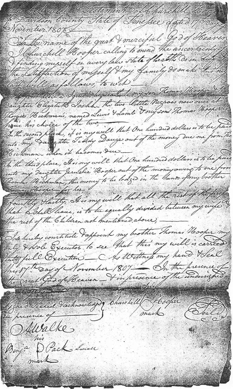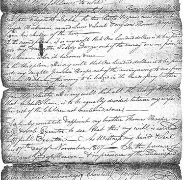 Churchill Hooper - Last Will & Testament - 1807