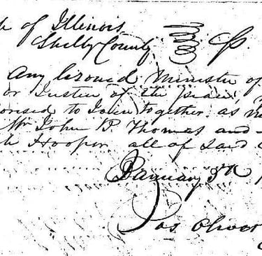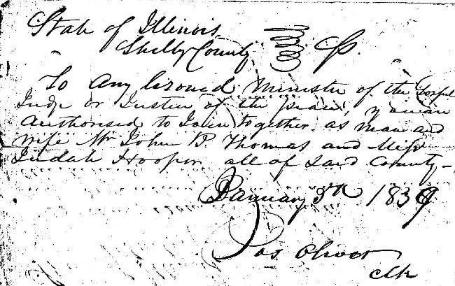 Note that the marriage was performed by Eli Hooper. Eli was the brother of Judah Hooper Thomas.