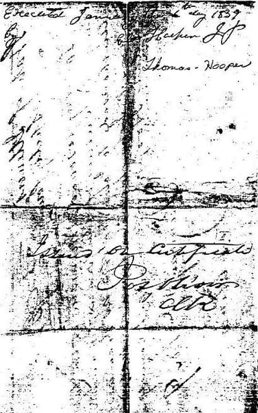 Eli Hooper, born 1807, son of James and Jemima Bankson Hooper. (It is important to note that Eli signed as a JP, not as a MG. Eli Hooper, son of James and Jemima Bankson Hooper, was a Justice of the Peace. I also have other information, on marriages, performed by Eli Hooper, after the year 1850. This causes confusion, as many researchers assume that Eli, son of James, was the Eli Hooper who died in Scott County, AR, 1850)