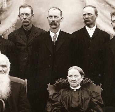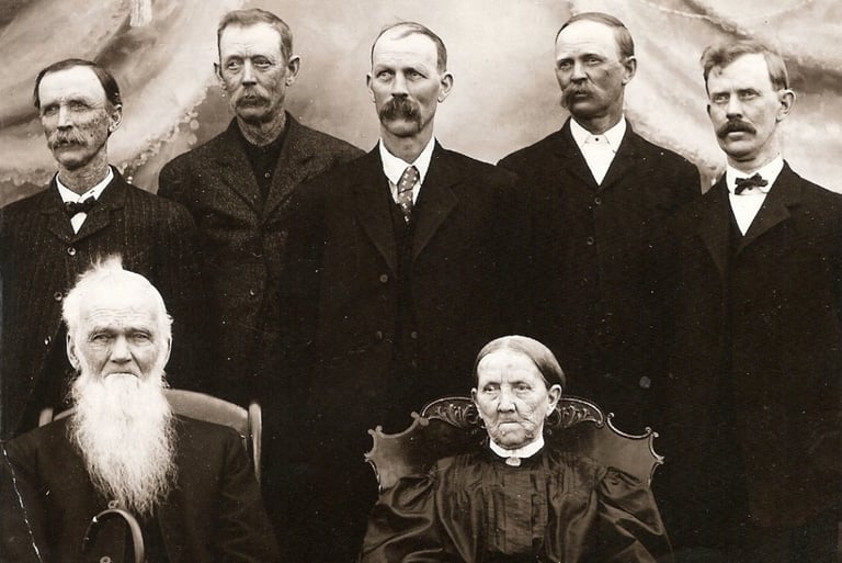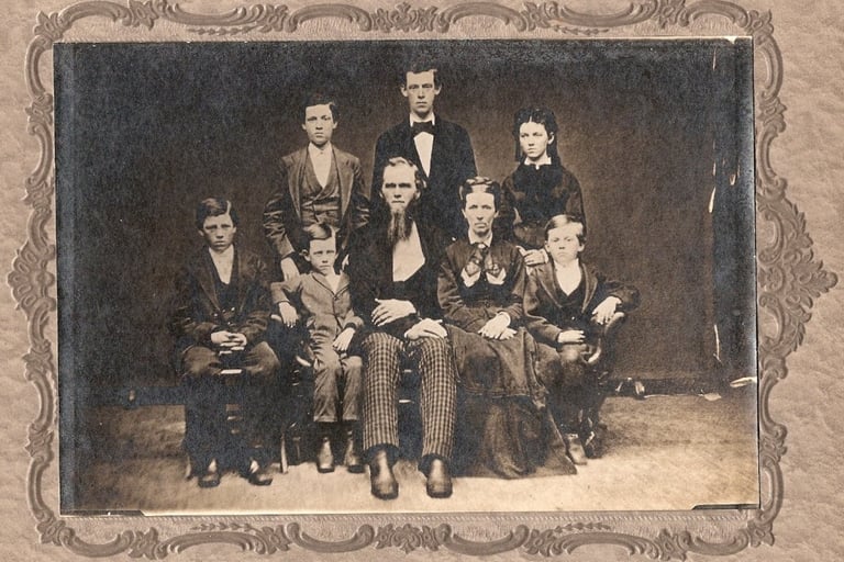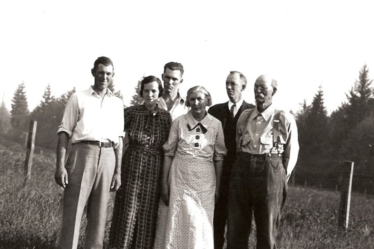 L-R: Lester Elmer, Louise, Frank, Cora Esther, John Amos, and Johnson Hooper ~ 1936