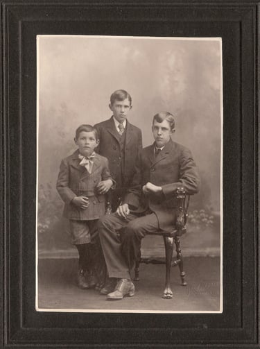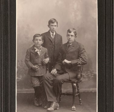 L-R: Charles (died August 1910 - soon after this photo was taken from a bee sting), Lester Elmer (Harold's Father), and John Amos Hooper