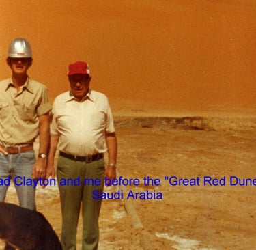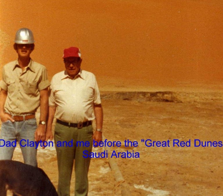Dad Clayton, and me Layton, before the "Great Red Dunes" of Saudi Arabia